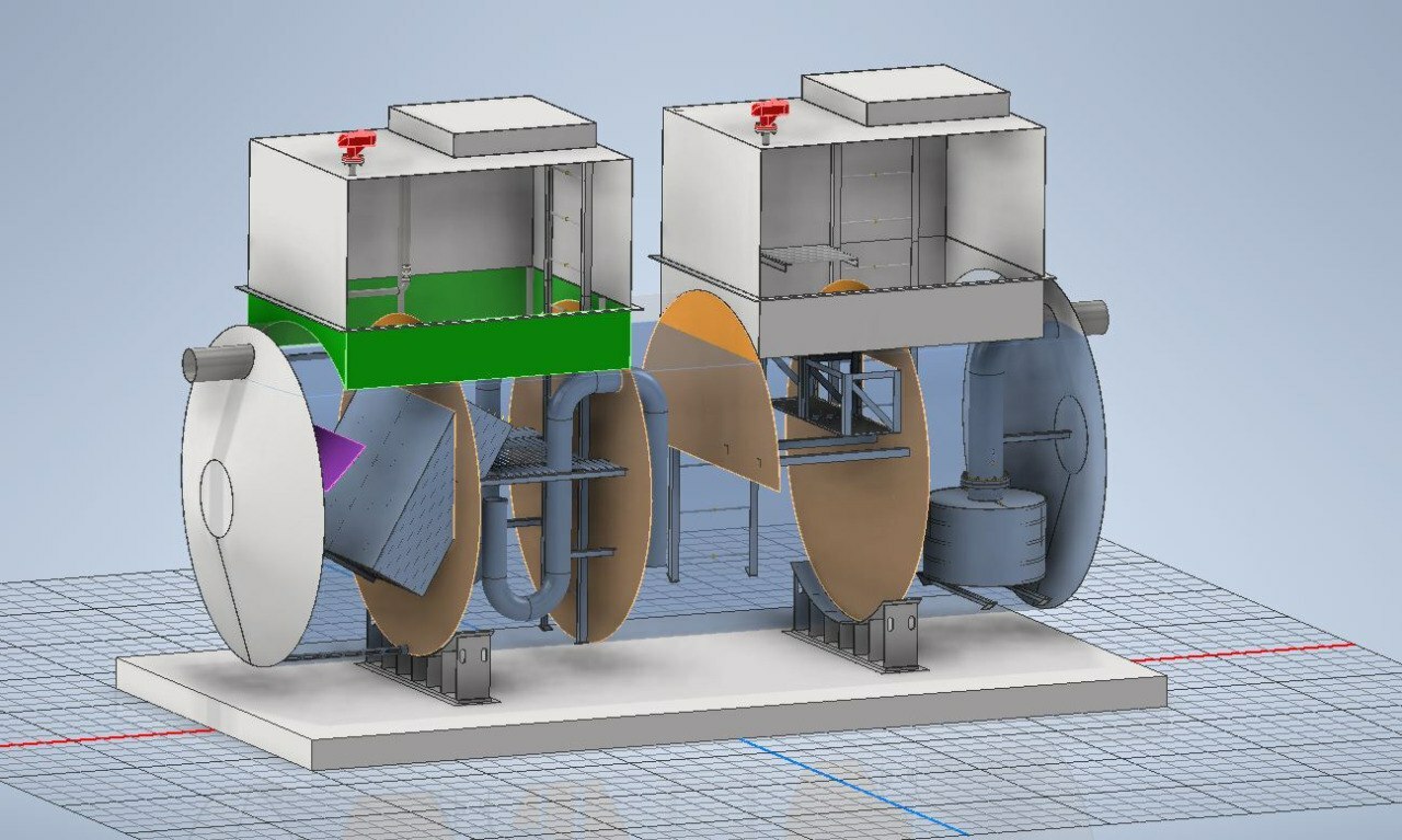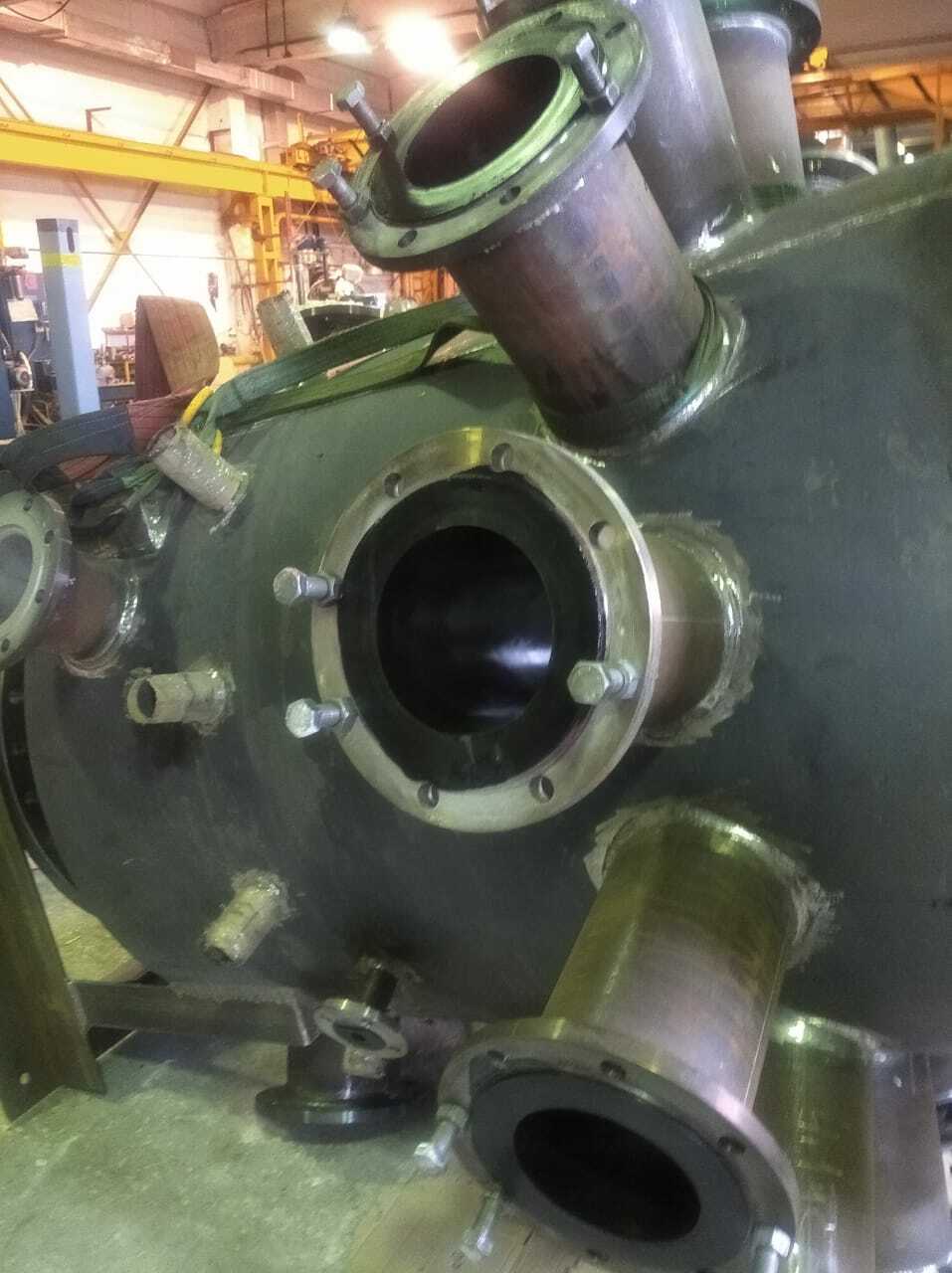 Корпус теплообменника с множеством патрубочных соединений. В процессе изготовления были выполнены операции раскроя металла, гибки обечаек и механической подготовки кромок под сварку, футеровка. Основную часть работ составила сборка корпуса и приварка фланцевых патрубков с соблюдением утвержденных сварочных процедур. Для проверки герметичности и прочности конструкции проводились гидравлические испытания и неразрушающий контроль сварных соединений. Завершающим этапом стала антикоррозийная обработка поверхности и нанесение защитного лакокрасочного покрытия.